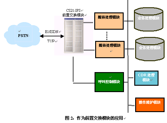 前置交換模塊:是一套可編程交換機(jī),提供E1和10/100M Ethernet接口,支持SS7、ISDN、TUP等信令 。具有大容量交換網(wǎng)絡(luò)、信號(hào)音、語(yǔ)音資源、會(huì)議電話(huà)功能。
