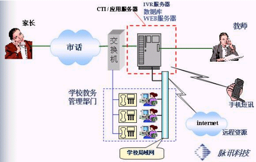 上海脈訊計(jì)算機(jī)科技有限公司,在成熟的IVR平臺(tái)上,成功開(kāi)發(fā)出統(tǒng)一消息理念的家校信息聯(lián)絡(luò)中心。