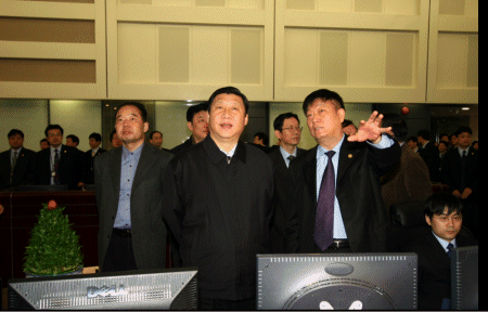 2007年2月16日,浙江省委書記習近平與省委常委、秘書長李強,副省長王永明、鐘山,省政府副秘書長王小玲、樓小東等人來到新建成的浙江省電力調度通信中心調度大廳進行視察,并通過杭州小靈通通信設備制造有限公司提供的電話調度系統(tǒng),向省、市、縣三級電力系統(tǒng)的廣大干部職工傳達了謝意并傳送新年的祝福。