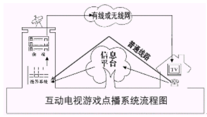 從信息高速公路的理論講,雙向?qū)拵ЬW(wǎng)會給我們的生活帶來革命性的變化。由于客觀條件的限制,我國目前無論是電信網(wǎng),還是電視網(wǎng)都沒能實(shí)現(xiàn)寬帶雙向服務(wù),但是無論是電視網(wǎng),還是電信網(wǎng),本身都相當(dāng)完善,所以我們完全可以通過一定的技術(shù)手段將電信網(wǎng)與電視網(wǎng)有機(jī)的結(jié)合起來,發(fā)揮信息平臺優(yōu)勢,讓電視互動起來,從而能夠在現(xiàn)有的條件下開展新的業(yè)務(wù)。互動電視游戲點(diǎn)點(diǎn)播系統(tǒng),它就是用電信網(wǎng)傳遞上行信號,用電視網(wǎng)傳遞下行圖像,利用寬帶網(wǎng)的原理使電視互動了起來。
