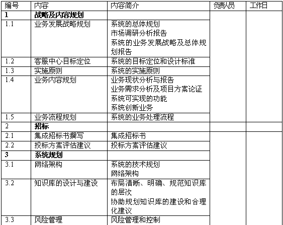 6.提出了未來客戶滿意度、分流柜面比率、產(chǎn)品促銷量等方面的量化比率;針對客服中心的主要業(yè)務(wù)提供量化的目標(biāo),并提出達成目標(biāo)的前提條件;對未來人員和系統(tǒng)規(guī)模提供量化預(yù)估。