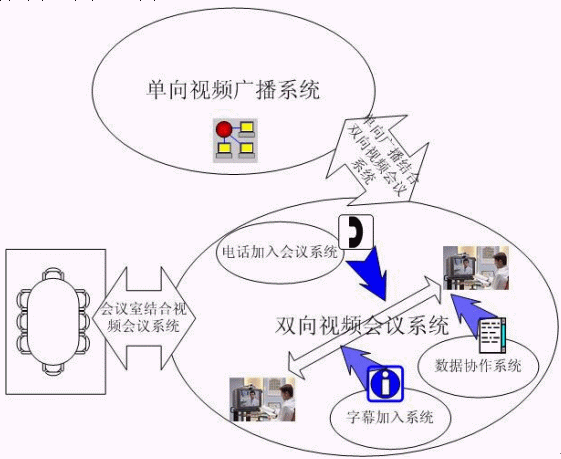 雙向視頻會(huì)議系統(tǒng)是實(shí)現(xiàn)視頻會(huì)議基本功能的主要系統(tǒng),其他均為輔助的子系統(tǒng)。