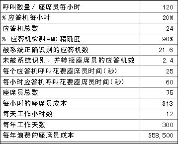 表1和表2表明在一個呼叫中心中精確的應答機檢測(AMD)給企業(yè)所帶來的價值,兩表之間關于呼叫中心運營的費用每年相差$175,500。那么不同的AMD精確度意味著什么?在上例中,精確度每增加1%意味著每年會減少約$5,850的損失。
