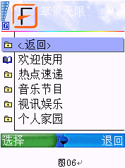 在確認(rèn)你的手機可以支持富年科技的專用移動流媒體播放軟件后,你就可以到掌景無限的網(wǎng)站上下載對應(yīng)的播放軟件。這款播放軟件的名稱是FondoPlayer,其版本號和界面設(shè)計因所支持的手機品牌和型號的不同而略有區(qū)別,但是功能則大同小異。下面我們就以諾基亞的6600為例演示一下GPRS手機看電視的具體方法吧。