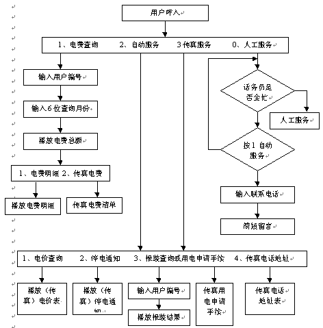 實(shí)現(xiàn)語(yǔ)音引導(dǎo)的用戶用電類型電價(jià)等電管信息傳真服務(wù) |