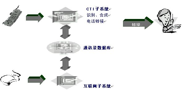 Internet子模塊相對(duì)比較簡(jiǎn)單,可以采用目前主流的網(wǎng)絡(luò)通訊錄服務(wù)方式進(jìn)行服務(wù);而為了更好服務(wù)用戶,CTI子模塊需要采用先進(jìn)的語音合成和語音識(shí)別技術(shù)。