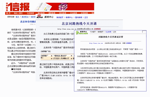 北京向導熱線經過一個多月緊張的開通工作,終于于4月18號正式開通。新浪、網易、TOM等媒體爭相報道北京向導的開通情況。