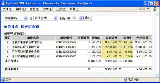 例如,在SynleadCRM"合同"工作界面,過濾出所需的定單記錄集,可生成以下復雜報表