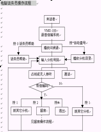 2. 在使用了電腦話務(wù)員忙轉(zhuǎn)接功能的情況下,當(dāng)分機(jī)占線時(shí)如果您選擇了留言,系統(tǒng)便將您的電話接通至相應(yīng)的留言信箱;當(dāng)分機(jī)無人接聽時(shí)交換機(jī)啟動(dòng)無應(yīng)答呼叫轉(zhuǎn)移功能,將您的電話重新接回到VMS-100