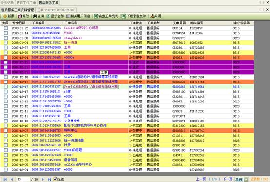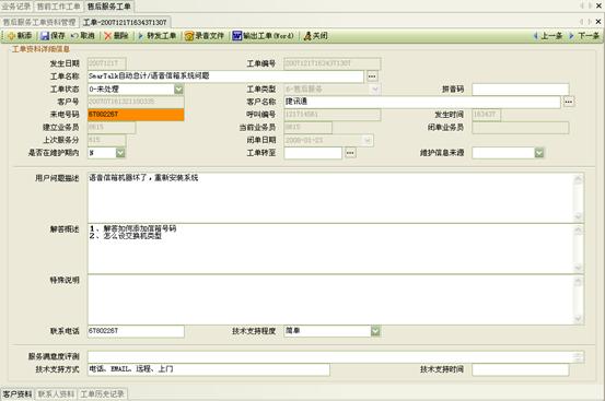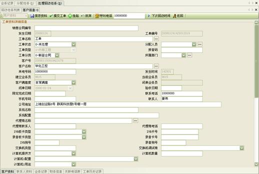 3) 工作流閉環(huán)、客戶通話歷史,客戶聯(lián)系歷史,工單流轉(zhuǎn):工作流系統(tǒng)是通過工單實(shí)現(xiàn)各工作流環(huán)節(jié)的聯(lián)系以及工作流的定義管理,工作流狀態(tài)查詢、更改的。操作員可根據(jù)用戶的不同業(yè)務(wù)請(qǐng)求,建立相應(yīng)的工單記錄,并對(duì)該事后處理過程進(jìn)行跟蹤;也可對(duì)要處理的事務(wù)形成工單轉(zhuǎn)給相應(yīng)的操作員,并跟蹤該工單的處理過程;可定期提示操作員處理要過期的工單,以提高服務(wù)質(zhì)量;每次處理過程都會(huì)有詳細(xì)的記錄,以便統(tǒng)計(jì)查詢 。如圖8、9、10:
