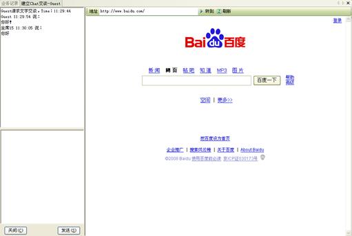 網(wǎng)頁(yè)同步:客戶在通過"客服代表回復(fù)"、"互聯(lián)網(wǎng)電話"、"文字交談"等方式與客服代表進(jìn)行實(shí)時(shí)交流時(shí),還可以通過網(wǎng)頁(yè)同步功能,與客戶代表的瀏覽器進(jìn)行同步。這樣,客戶與客戶代表看到的是同一網(wǎng)頁(yè),由客戶代表引導(dǎo)客戶對(duì)網(wǎng)頁(yè)進(jìn)行瀏覽,找到所需要的信息。網(wǎng)頁(yè)同步功能適用于不同的實(shí)時(shí)交流方式,可以大大提高客戶服務(wù)的效率和質(zhì)量。如圖14、15所示: