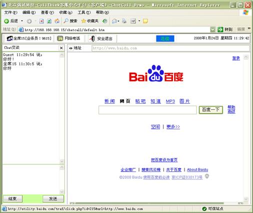 Chart交談:客戶可以選擇通過WEB頁(yè)面與座席通過文字的形式進(jìn)行交談,無(wú)需語(yǔ)音通信 ,客戶進(jìn)入特定的CHAT網(wǎng)頁(yè)后,可以選擇一個(gè)座席或一組座席進(jìn)行CHAT交談。如圖12和13所示: