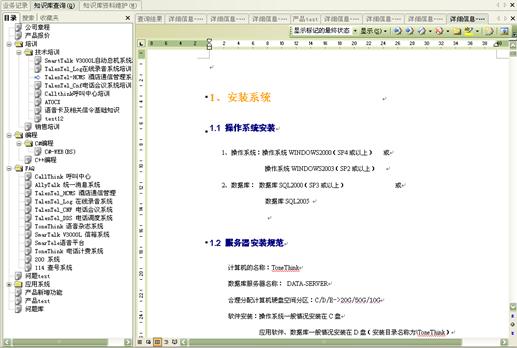 業(yè)務(wù)知識(shí)庫(kù)系統(tǒng)包括大量的信息,它可以幫助坐席人員精確、及時(shí)地得到相關(guān)知識(shí)的詳細(xì)信息。坐席人員可以利用業(yè)務(wù)知識(shí)庫(kù)系統(tǒng)提供的多種查詢手段,進(jìn)行各種信息的查詢。管理人員還可以通過知識(shí)庫(kù)訪問量統(tǒng)計(jì)來(lái)了解座席員訪問知識(shí)庫(kù)的情況,并且可以通過知識(shí)庫(kù)資料維護(hù)來(lái)靈活定制知識(shí)庫(kù)的內(nèi)容。