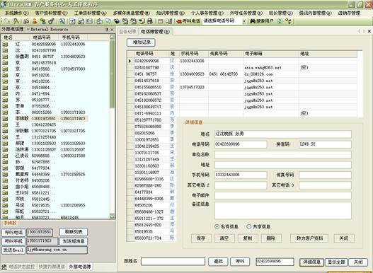 其所有資料顯示在主界面右側(cè)的“外部電話本”中。在轉(zhuǎn)發(fā)工單等功能中也將使用外部電話簿資料。如圖5所示: