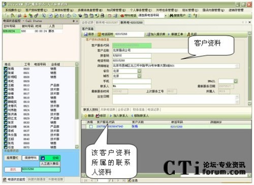 當(dāng)有電話來(lái)電時(shí),系統(tǒng)顯示來(lái)電號(hào)碼及來(lái)電人員的客戶資料信息;