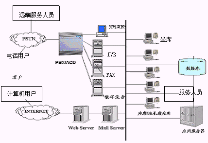 呼叫中心是伴隨著激烈的市場競爭和企業(yè)成功的經(jīng)營理念而生,既低端的價格競爭向高端的服務(wù)競爭以及對企業(yè)核心客戶的保持。它融合了傳統(tǒng)的公共電話網(wǎng)PSTN,計(jì)算機(jī)網(wǎng)絡(luò),以及數(shù)據(jù)庫存儲技術(shù)和自動語音應(yīng)答IVR等技術(shù),將語音與數(shù)據(jù)資源有效的結(jié)合,為企業(yè)在技術(shù)上保證核心客戶的高忠誠度打下了堅(jiān)實(shí)的基礎(chǔ)。