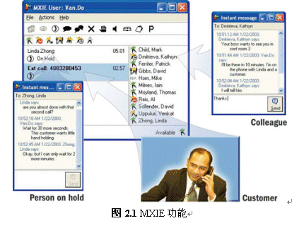使用MXIE還提供了文本交流、收發(fā)語音郵件、收發(fā)傳真、發(fā)起電話會議或視頻會議、綁定話機(jī)等多種實用的溝通功能。除此以外,MXIE還集成了軟件電話功能,用戶外出時可以使用它來接聽或撥打電話。