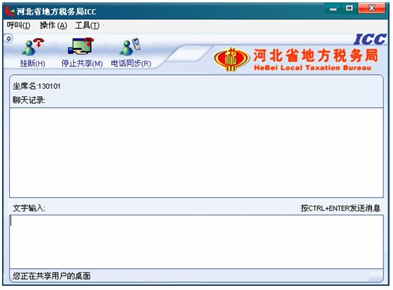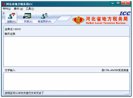 輸入文字信息后按CTRL+ENTER就可發(fā)送消息。輸入的文字可以在 ICC界面上面的聊天記錄對話框中顯示,同時(shí)發(fā)送給納稅人。如下圖: