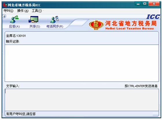 4. 如果有納稅人呼叫,左下角的狀態(tài)欄文字提示“有用戶呼叫您,請應(yīng)答”,此時(shí)坐席就可以點(diǎn)擊應(yīng)答按鈕,應(yīng)答納稅人的呼叫了。如下圖所示:
