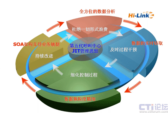 第五代呼叫中心JIT管理思想是商路通公司在總結(jié)大量第五代呼叫中心工程實(shí)施案例并和眾多呼叫中心運(yùn)營管理專家一起總結(jié)并提出的針對(duì)呼叫中心的管理思想。其具體內(nèi)涵包括杜絕一切形式的浪費(fèi),及時(shí)過程干預(yù)和細(xì)化控制過程等要素,最終目的是持續(xù)改進(jìn)企業(yè)的業(yè)務(wù)流程,達(dá)成企業(yè)的服務(wù)及經(jīng)營目標(biāo)。