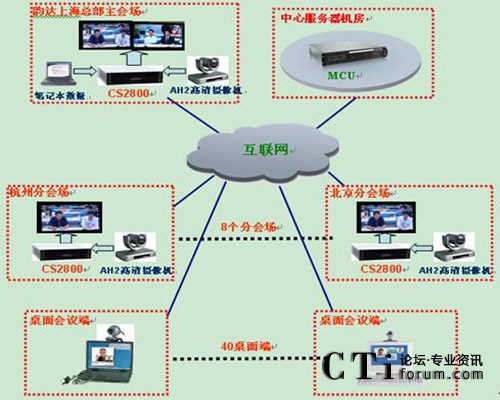 系統(tǒng)為每個點(diǎn)配置華平CS2800全高清視頻終端,它可以實(shí)現(xiàn)2路1080P全高清視頻輸入和4路1080P全高清視頻輸出,并且全面支持H.264 High Profile(level5)編碼技術(shù),在視頻精度提高一倍的情況下,所需帶寬減半,實(shí)現(xiàn)全動態(tài)1080P視頻傳輸僅需1M的帶寬,配合華平高清MCU,可在韻達(dá)快運(yùn)現(xiàn)有的網(wǎng)絡(luò)條件下實(shí)現(xiàn)全公司的全高清視頻會議,實(shí)現(xiàn)高清、高效溝通。