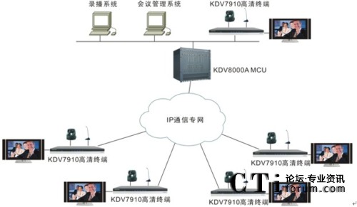 各會(huì)場(chǎng)配置KDV7910高清視頻終端,該終端是業(yè)內(nèi)第一款真正支持1080P的高清視頻會(huì)議終端,具有非凡的畫(huà)面質(zhì)量、音頻效果和卓越的雙流協(xié)作能力。各終端與中心點(diǎn)MCU之間通過(guò)全省財(cái)政IP通信專(zhuān)網(wǎng)相連。