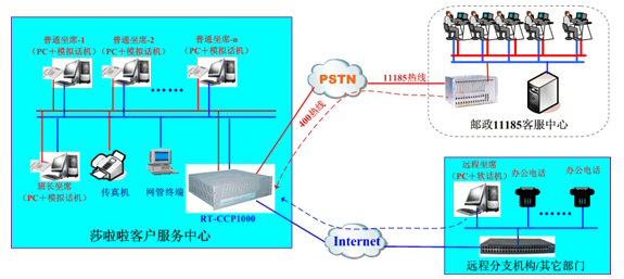 IP分布式特點:對于莎啦啦這樣一個企業(yè)級客戶而言,呼叫中心只是企業(yè)的一個部門,這個部門需要與企業(yè)的其他部門協(xié)同工作,才能最大限度的發(fā)揮呼叫中心的作用。這就要求莎啦啦所部署的呼叫中心系統(tǒng)具備極為便捷的擴展能力,在需要其他部門響應(yīng)客戶服務(wù)時,能夠?qū)⑵渌块T的相關(guān)人員立即升級為更專業(yè)的二線坐席來協(xié)同處理。而傳統(tǒng)的呼叫中心系統(tǒng)中,在需要協(xié)同服務(wù)時,臨時部署二線坐席或者辦公電話,顯然是不可能的,而為其他部門設(shè)立專家坐席,對于資金有限的企業(yè)而言,其成本和收益往往又不成比例。那么基于IP的技術(shù)則可以非常輕松的解決這一矛盾。RT-CCP1000自帶的免費軟電話,能夠通過標(biāo)準(zhǔn)的SIP或者H.323協(xié)議和局域網(wǎng)使莎啦啦的任何專業(yè)人員可以立即加入到整個呼叫中心系統(tǒng)坐席組中。