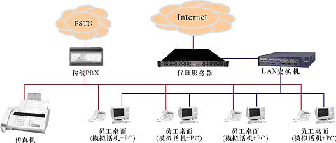 某中小企業(yè),無分支機(jī)構(gòu),現(xiàn)時有一個由傳統(tǒng)PBX構(gòu)建的電話系統(tǒng)和一個以太局域網(wǎng),兩者相互獨立,局域網(wǎng)通過一臺代理服務(wù)器用以太網(wǎng)或ADSL方式接入Internet。企業(yè)的語音通信由電話系統(tǒng)實現(xiàn);員工的日常工作需要使用計算機(jī)以及多種局域網(wǎng)和Internet服務(wù)。