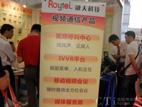 CTI論壇(ctiforum)9月25日消息(記者楊悅):記者從2009年中國(guó)國(guó)際信息通信展覽會(huì)了解到,在本次展會(huì)上,融天科技融天科技再次隆重推出了國(guó)際領(lǐng)先技術(shù)的視頻呼叫中心、移動(dòng)視頻會(huì)議、IVVR平臺(tái)、IP媒體服務(wù)器、3G視頻網(wǎng)關(guān)等視頻系列產(chǎn)品及解決方案。