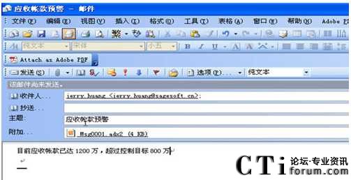 通過(guò)與ERP 集成的預(yù)警平臺(tái),河套酒業(yè)可以根據(jù)需要監(jiān)控任意環(huán)節(jié),向相應(yīng)管理者發(fā)布預(yù)警信息?梢葬槍(duì)同一個(gè)業(yè)務(wù)中不同的業(yè)務(wù)動(dòng)作定義監(jiān)控,可以集中監(jiān)控,也可以根據(jù)管理層的要求對(duì)特定條件異常業(yè)務(wù)進(jìn)行監(jiān)管。在異常業(yè)務(wù)發(fā)生的同時(shí),通過(guò)郵件或短信等指定形式主動(dòng)向監(jiān)管進(jìn)行報(bào)告。如下圖對(duì)整體應(yīng)收帳款超過(guò)指定額度的預(yù)警。