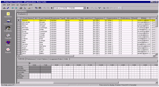 除個人信息以外,還有每個人的技巧應(yīng)用能力和工作效率也必須要記錄在系統(tǒng)之中,工作日程和預(yù)測模型的制定是否合理主要看員工的工作時間和工作效率。圖6展示的就是典型的員工排班界面。這些信息使用了ACD的數(shù)據(jù),預(yù)測某個技能組在特定的時間需要多少個員工才能應(yīng)付預(yù)測出的電話量。WFMS系統(tǒng)可以通過各種不同的渠道來體現(xiàn)和存儲這些人員信息。