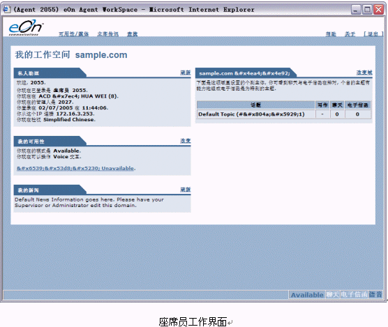 WorkSpace)、座席班長工作空間(Supervisor WorkSpace)和管理員工作空間(Administrator WorkSpace)等幾個不同指向的鏈接。供聯絡中心的座席員、座席班長和管理員分別使用。