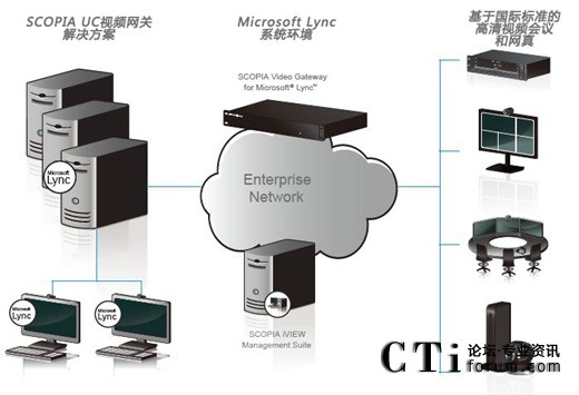 通過SCOPIA UC視頻網(wǎng)關(guān),Microsoft的Lync和Office Communicator用戶可以輕松地與任意基于國際標(biāo)準(zhǔn)建立的傳統(tǒng)視頻會(huì)議系統(tǒng)無縫連接,無論該系統(tǒng)是會(huì)議室型高清設(shè)備、桌面型終端,抑或網(wǎng)真系統(tǒng)等等。采用該解決方案,用戶可同時(shí)享用傳統(tǒng)視頻會(huì)議和Lync、Office Communicator桌面辦公通訊系統(tǒng)帶來的便捷和高效。