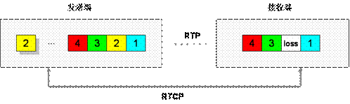 利用實(shí)時(shí)傳輸控制協(xié)議RTCP反饋信息提供丟包重發(fā)功能,當(dāng)接收端檢測到有丟包時(shí),判定對端是否來得及進(jìn)行重發(fā),可以的話通過RTCP控制信道向發(fā)送端請求重發(fā)。