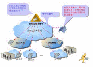在公安系統(tǒng)中,有時候出現(xiàn)緊急案件,需立刻部署任務(wù),例如要求全市所有民警同時出動進(jìn)行路口封鎖及排查!如果一個一個打電話通知將會很麻煩,如果有電話廣播功能將是很方便的,可以同時接通很多電話,將命令廣播下去。華為3Com公司V2oIP系統(tǒng)在強大的GK支持下,只要事先定義了特服號對應(yīng)的電話號碼群組,撥通特服號就能實現(xiàn)電話廣播。