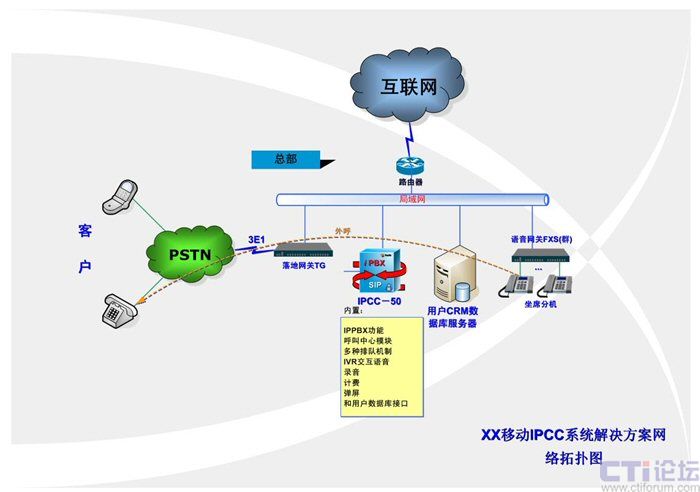 隨著社會(huì)的進(jìn)步和發(fā)展,各企業(yè)和公司越來(lái)越重視將現(xiàn)代科技和營(yíng)銷(xiāo)相結(jié)合,華東某省移動(dòng)公司,為了快速高效地拓展自己的業(yè)務(wù),決定借助網(wǎng)絡(luò)和通訊的發(fā)展建立新的營(yíng)銷(xiāo)平臺(tái),通過(guò)嚴(yán)格的考察和篩選,選擇攜手Polylink集團(tuán)打造新型的IP呼叫中心平臺(tái)。 4.方案設(shè)計(jì)