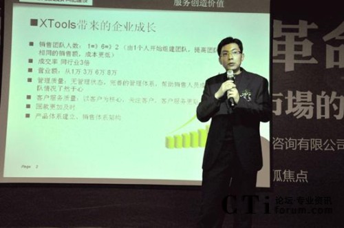 另外,濟南創(chuàng)弈工場總經(jīng)理趙小峰任曉峰與現(xiàn)場嘉賓分享了自身創(chuàng)業(yè)與成長過程。創(chuàng)弈工場科技有限公司成立于2008年,是由山東大學創(chuàng)業(yè)團隊發(fā)展而來的、以先進電子商務架構和企業(yè)CI設計專家為目標的公司。趙總任總是一位80后互聯(lián)網(wǎng)新銳,他表示:“公司運用XTools具有管理思想的系統(tǒng)幫助管理這支年輕的隊伍,使其健康發(fā)展,對于創(chuàng)業(yè)者來說,銷售體系的管理是至關重要的,這樣我們少走了彎路!
