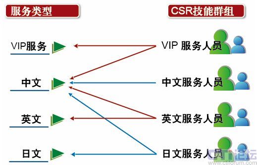 1. 屬于多技能的客服人員能夠服務(wù)的話(huà)務(wù)量隊(duì)列也就越廣,如,主要服務(wù)「一般英文」的客服人員能夠服務(wù)「一般服務(wù)英文」與「一般服務(wù)中文」的來(lái)電。