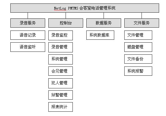 NetLog PMTMS會(huì)客室電話管理系統(tǒng)采用基于分布式、多層控制管理體系的設(shè)計(jì)思想,將電話線路與內(nèi)部網(wǎng)絡(luò)有效地結(jié)合在一起,形成一套完整管理系統(tǒng),包括會(huì)見(jiàn)監(jiān)控、通話錄音、數(shù)據(jù)管理。