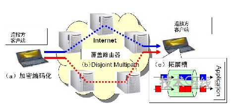 由于是利用多路徑路由發(fā)送分割的數(shù)據(jù),1條路徑被竊聽只會有部分分割數(shù)據(jù)被竊聽。不過,如果發(fā)送分割數(shù)據(jù)的全部路徑都被竊聽,分割數(shù)據(jù)也可能全部流出。為此,此次的秘密通信系統(tǒng)設(shè)想采用基于覆蓋路由器的網(wǎng)絡(luò)(覆蓋網(wǎng)絡(luò)),將全部數(shù)據(jù)被竊聽的可能性減小到了接近0。這是因為覆蓋路由器的通信路徑能夠進行實時切換。此次的保密通話系統(tǒng)將在覆蓋網(wǎng)絡(luò)達到實用化水平時投產(chǎn)實用。計劃在3~4年內(nèi)實現(xiàn)。