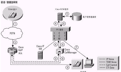 作為Cisco AVVID(語音、視頻和集成數(shù)據(jù)體系結(jié)構(gòu))的一個整體組成部分,IPCC既可在單一地點環(huán)境中實現(xiàn),也可被集成到一個多地點聯(lián)絡(luò)中心計劃之中。IPCC所擁有的特殊功能包括智能呼叫路由選擇、自動呼叫發(fā)送(ACD)功能、網(wǎng)絡(luò)到桌面的計算機電話集成(CTI)、交互式語音響應(yīng)(IVR)集成、呼叫隊列以及合并報告。IPCC開放、基于標(biāo)準(zhǔn)的體系結(jié)構(gòu)還擁有支持基于Web的客戶聯(lián)絡(luò)功能的潛力,包括協(xié)作瀏覽、文本聊天以及電子郵件響應(yīng)管理。