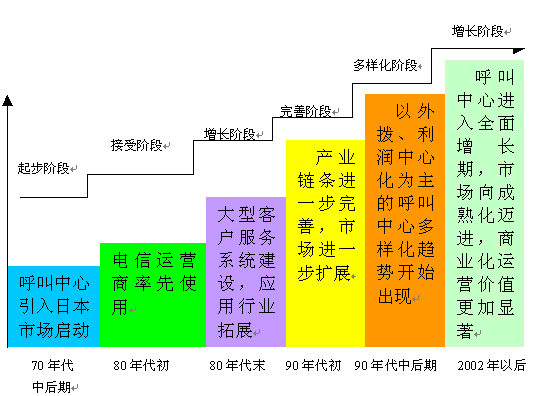 日本市場是全球較為成熟的呼叫中心市場之一,呼叫中心的應(yīng)用遍布各行各業(yè)。在整體呼叫中心行業(yè)產(chǎn)生的市場價(jià)值中,由呼叫中心外撥直接產(chǎn)生的占1/4強(qiáng),50%的呼叫中心配備了專用外撥設(shè)備。這說明呼叫中心已完全脫離了服務(wù)窗口的概念,成為了企業(yè)營銷的有力工具,呼叫中心已高度利潤中心化。