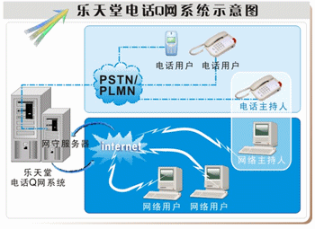 電話Q網融入Web及IP技術,以樂天堂自主研發(fā)的網間即時通訊軟件"Skytalk IM(天語通)"為基礎來實現網絡用戶和電話用戶的聊天互動的。