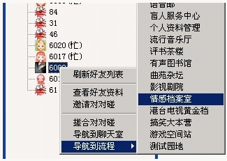 本功能對于主持人向新用戶介紹電話Q網,留住新用戶特別有用。只要知道用戶想到哪個區(qū)域后,主持人直接點擊該用戶名即可以人工將用戶送到相應區(qū)域,使用戶感受Q網的快捷樂趣。