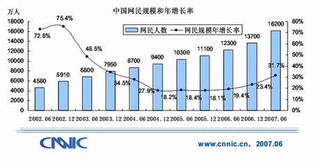 1、上網(wǎng)人數(shù)持續(xù)發(fā)展,截止到2007年6月底,已達(dá)1.62億。手機(jī)上網(wǎng)人數(shù)已達(dá)4430萬,而上一年這個(gè)數(shù)字為1700多萬。