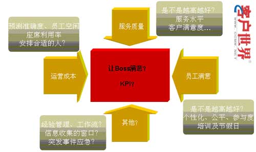 所以,我們認(rèn)為呼叫中心的運(yùn)營解決方案,應(yīng)該綜合協(xié)調(diào)人力資源管理、話務(wù)預(yù)測、自動(dòng)排班、績效考評、話務(wù)分析、現(xiàn)場管理、實(shí)時(shí)預(yù)警等各個(gè)現(xiàn)場管理要素。各個(gè)要素之間即是相互獨(dú)立,又相互關(guān)聯(lián)的,系統(tǒng)通過設(shè)置目標(biāo)值,達(dá)到管理目標(biāo)的均衡,這個(gè)平衡,從最核心的體現(xiàn)來看,就是一個(gè)完整的KPI體系中各個(gè)指標(biāo)的實(shí)現(xiàn)。