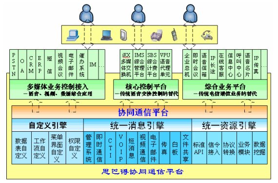 為此,在行業(yè)企業(yè)信息化的大思路下,思巴得公司以MS3000 IP多業(yè)務(wù)通信系統(tǒng)為基礎(chǔ)適時(shí)推出了面向行業(yè)企業(yè)的更先進(jìn)、更靈活、更經(jīng)濟(jì)、更具競爭實(shí)力及最全面的綜合通信完全解決方案――“多媒體協(xié)同通信”,是綜合各種通信方式(如:語音、短信、視頻、數(shù)據(jù)等),與各種信息服務(wù)平臺(tái)系統(tǒng)(包括OA、ERP、CRM等等)融合的大通信概念下的協(xié)同通信,