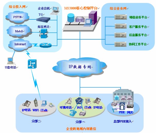 多功能的內(nèi)部通信業(yè)務(wù)(視頻、WiFi無線、軟電話漫游、即時(shí)通信、語音信箱、多方通話等)