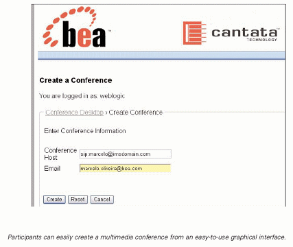 該應(yīng)用是利用BEA WebLogic workshop編寫的,運(yùn)行于 BEA WebLogic SIP 服務(wù)器上。用戶通過BEA WebLogic門戶提供的圖形界面建立會(huì)議。BEA WebLogic SIP 服務(wù)器利用SIP協(xié)議與Cantata SnowShore IP Media Server(Cantata SnowShore IP 媒體服務(wù)器)進(jìn)行通信,同時(shí)它還使用了MSCML控制媒體處理功能。通過使用XMLBeans, 該應(yīng)用產(chǎn)生并編譯了MSCML。XMLBeans是一個(gè)由BEA公司開發(fā)的開源XML綁定工具。 BEA WebLogic Workshop工具使得開發(fā)人員可以很容易地創(chuàng)建這些通過使用SnowShore 媒體服務(wù)器開創(chuàng)的面向Web的SIP和XML接口的融合應(yīng)用。