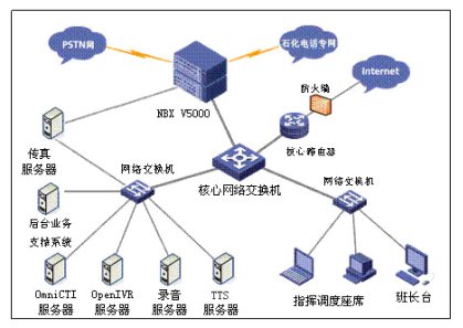 整個指揮中心調度系統(tǒng)由華為3COM NBX V5000 Call Processor 250-2PWR通信平臺、IVR(智能語音應答)、CTI(CTI中間件)、AgentBrowser(人工坐席系統(tǒng))及NBX
